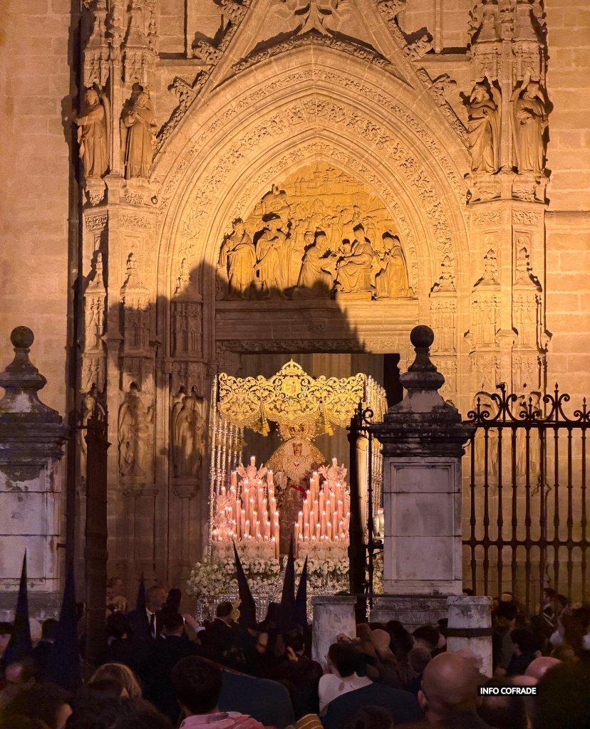 ▶️ Procesión Triunfal de vuelta (Sábado 8 de noviembre): Hora de salida: 16:30. Recorrido: Puerta de Palos, Plaza Virgen de los Reyes, Cardenal Carlos Amigo, Alemanes, Hernando Colón, Plaza de San Francisco, Plaza Nueva (Andén), Tetuán, Rioja, Plaza de la Magdalena, San Pablo, Cristo del Calvario, Canalejas, Gravina, Puerta Real, Alfonso XII, Plaza del Museo, Capilla (21:30).