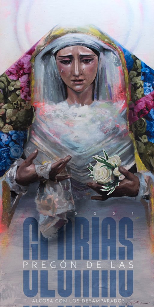 Recientemente se ha presentado el cartel del pregón de las Glorias 2025, de título «Flor de Mayo» y protagonizado por la Virgen de los Desamparados de Alcosa, imagen seleccionada para presidir el pregón este año.